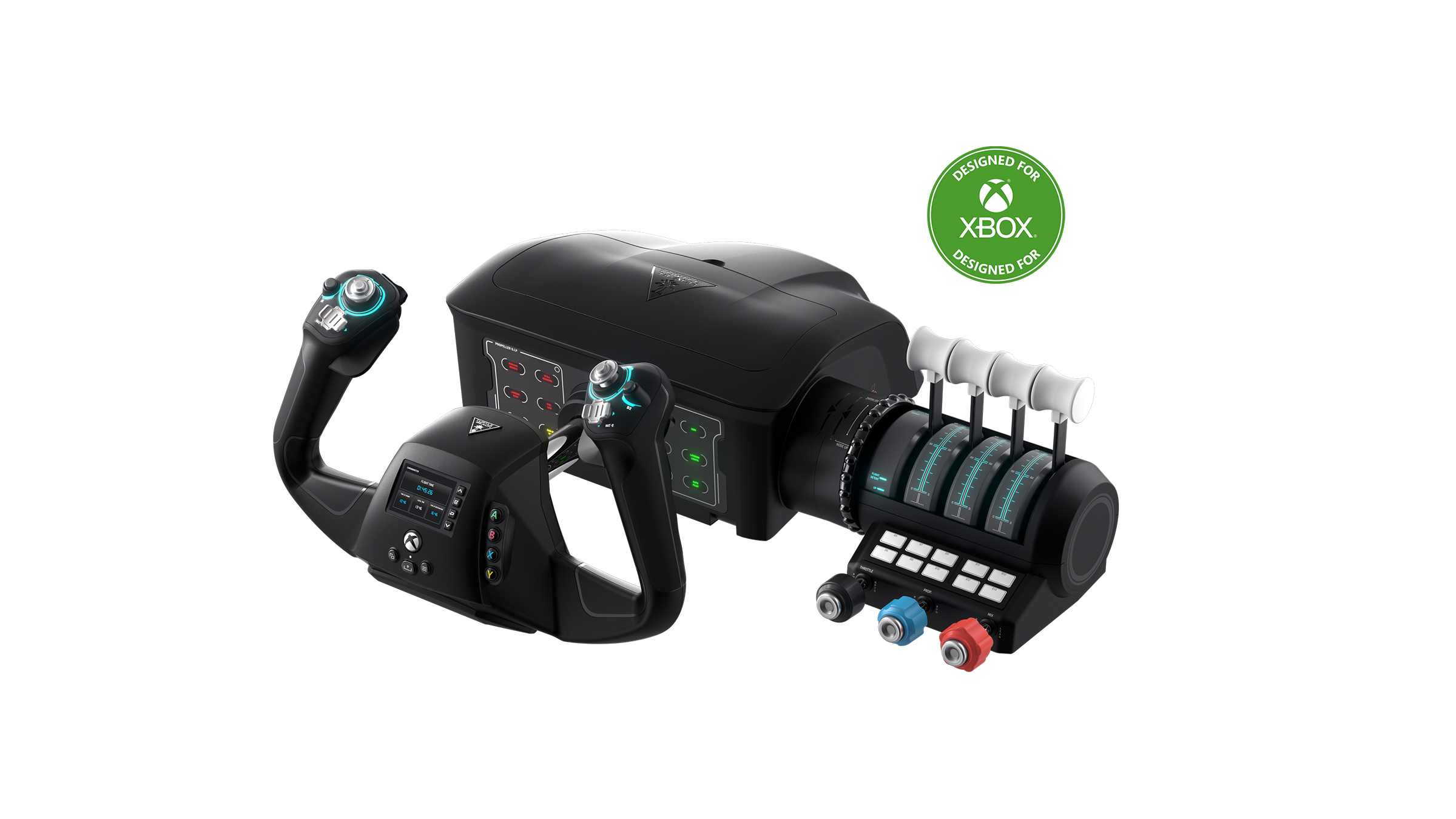 - Universal, all-in-one design including throttle quadrant, trim wheel & yoke